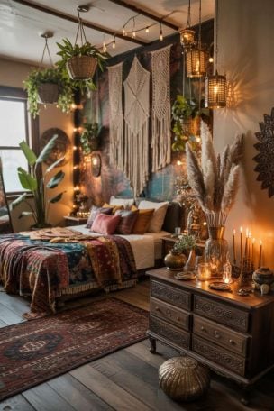 This proves that bohemian bedroom decor can feel intimate and mysterious rather than bright and airy.